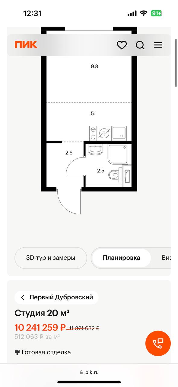 В июне 2023 года студия ПИКа в Первом Дубровском стоила 7,7 млн рублей, сегодня застройщик продаёт её за 10,2 млн. До выдачи ключей ещё более года и нет сомнений, что за это время квартира ещё подорожает.