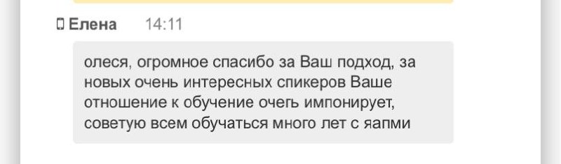 И то, что люди из раза в раз приходят ко мне, потому что знают насколько тщательно я отношусь к подбору спикеров, качеству обучения, организации.