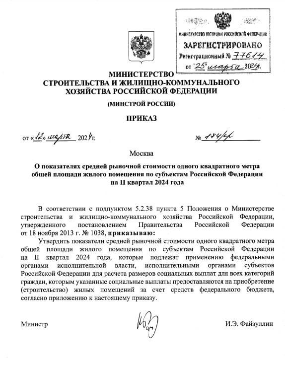 Минстрой утвердил среднюю рыночную стоимость 1 кв. м жилья на II квартал 2024 года
